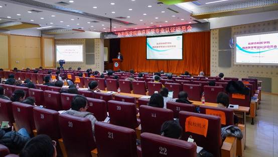 2019年12月16日下午,我校临床医学专业认证动员会在教学科研楼八层报告厅召开。会议旨在全面学习教育部临床医学专业认证相关文件精神,统一思想、积极动员部署学校临床医学专业认证自评的各项准备工作、进一步提升八年制临床医学专业教育教学质量。会议由院校党委书记吴沛新主持,王辰院校长、姚龙山副书记、李青副院校长、王云峰副书记、张勤副院校长、王健伟副院校长,基础学院、临床学院和人文学院负责人及相关部门、学系(教研室)负责人和教师、本科教学工作委员会和教学督导委员会成员、院校机关全体工作人员、学生代表等200多人参加了会议。